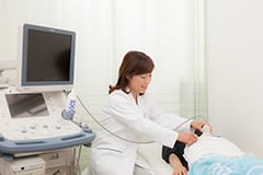 超音波診断装置(エコー)を使用した検査です。マンモグラフィのようなX線を使用していませんので、妊娠中の方でも受けて頂ける検査です。